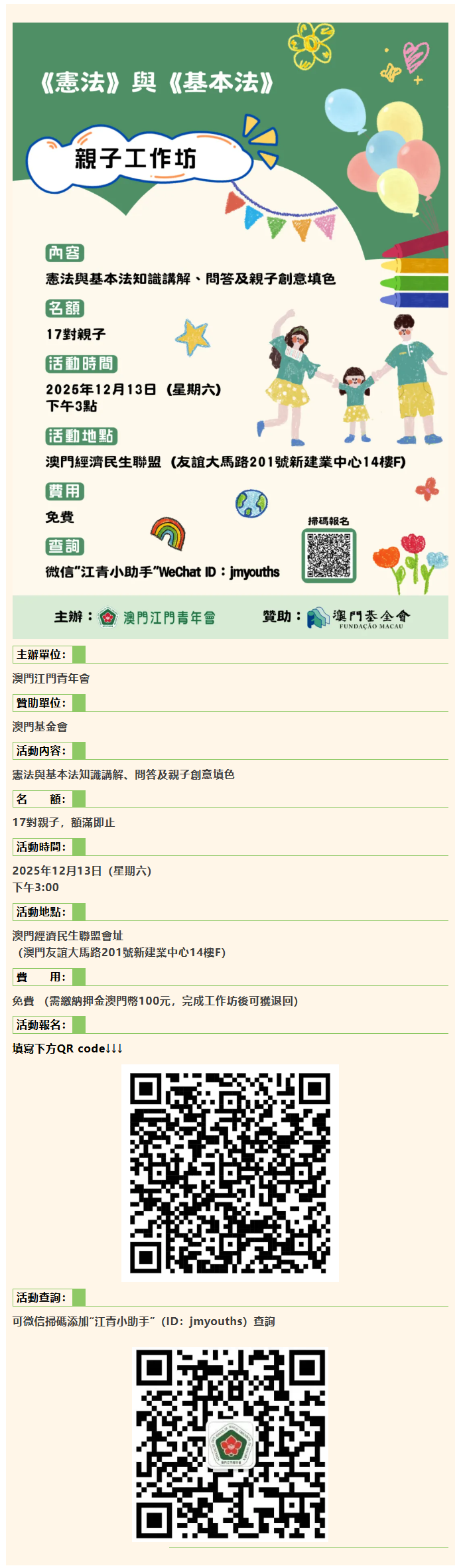/ 活動報名丨《憲法》與《基本法》親子工作坊