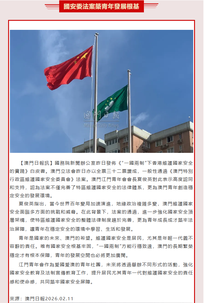 / 澳門江門青年會:國安委法案築青年發展根基