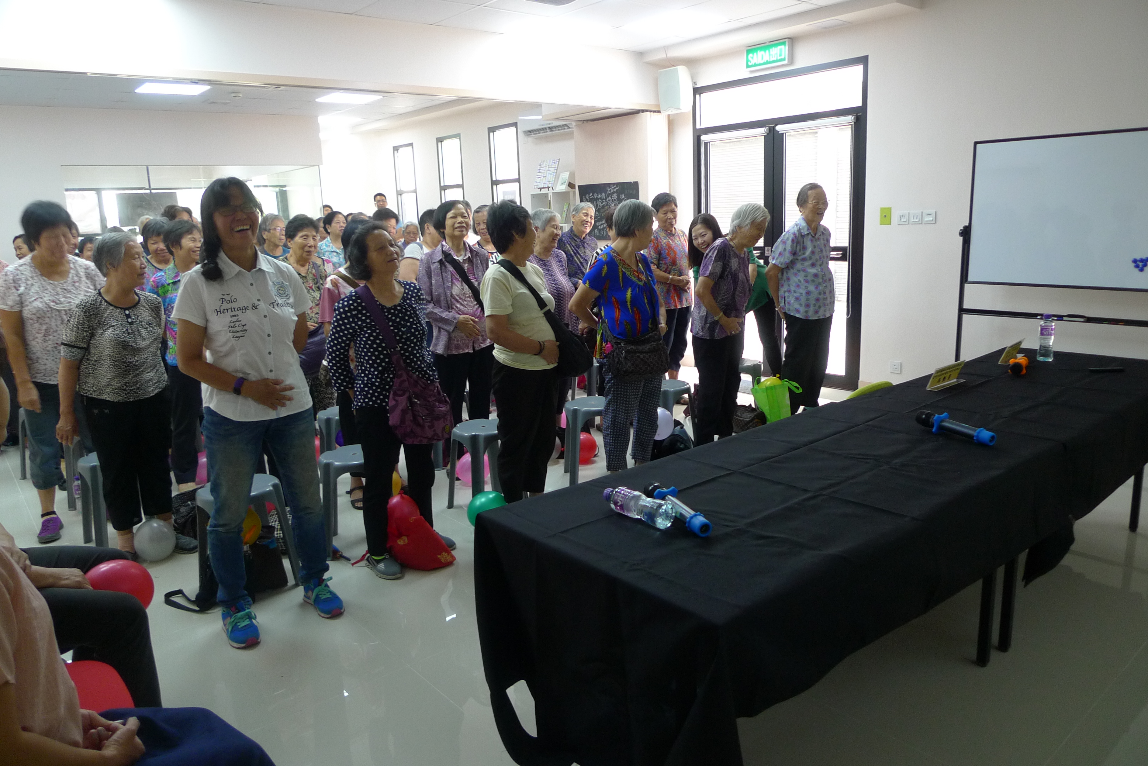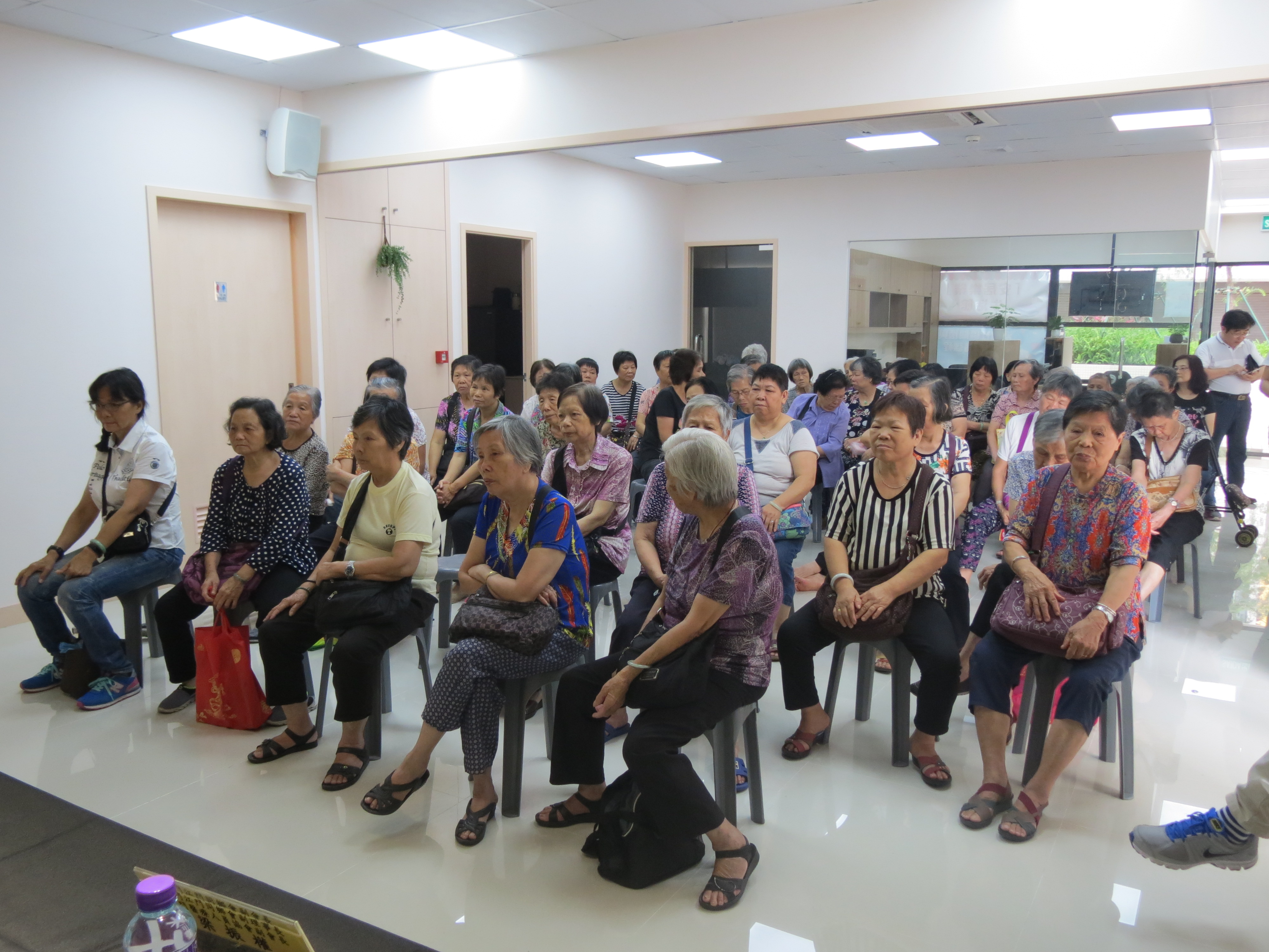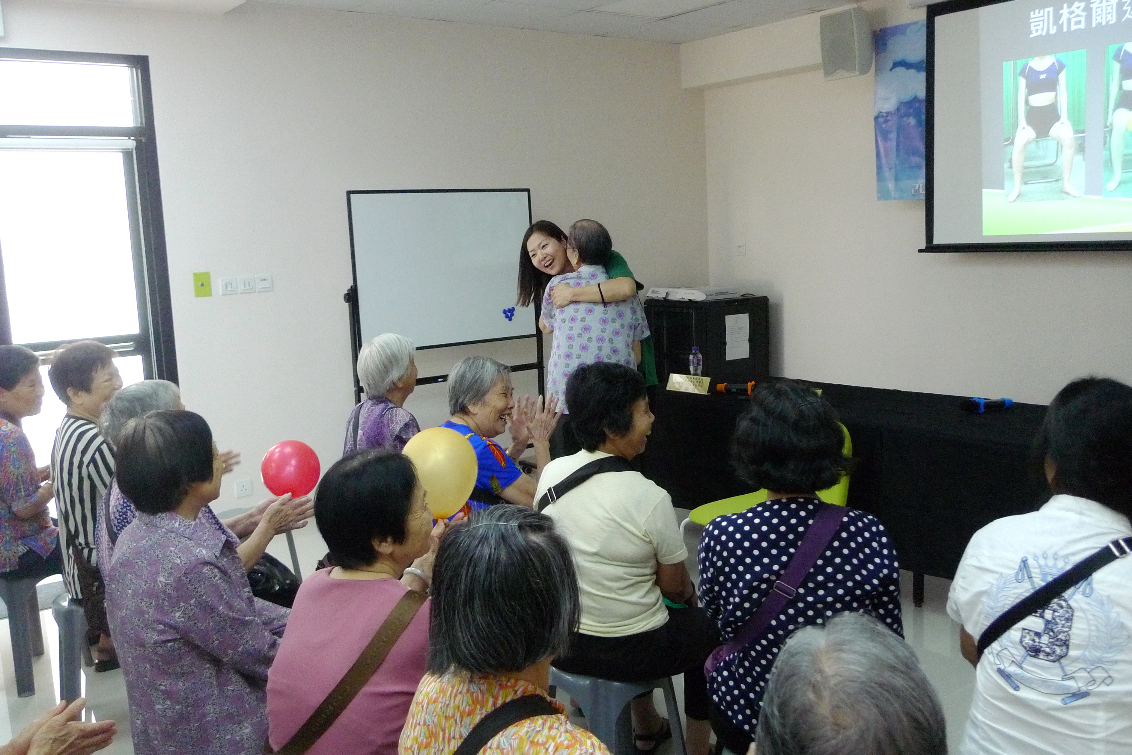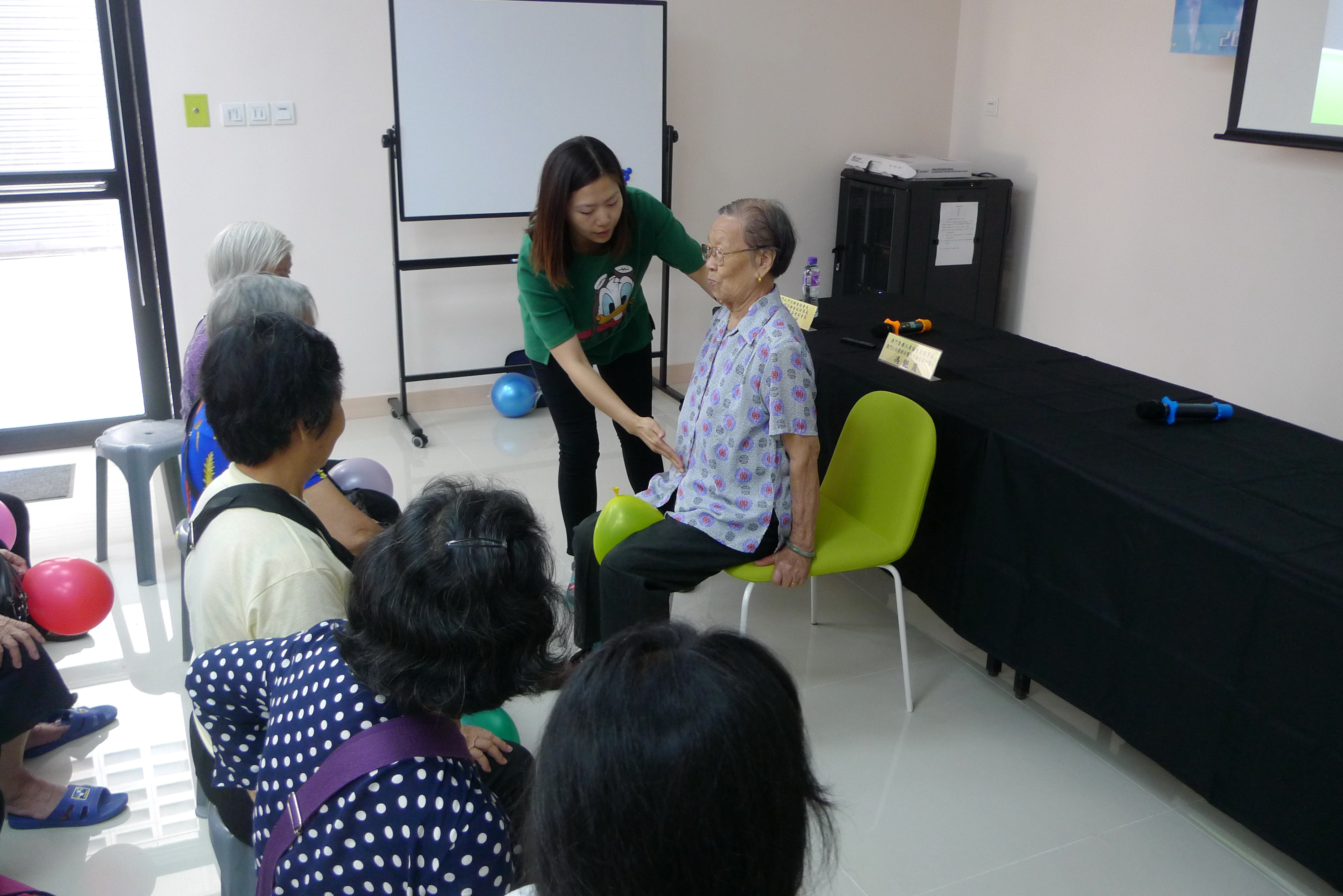 街坊們都非常積極參與,這位94歲的婆婆在馮護士的指導下為大家作簡單示範......