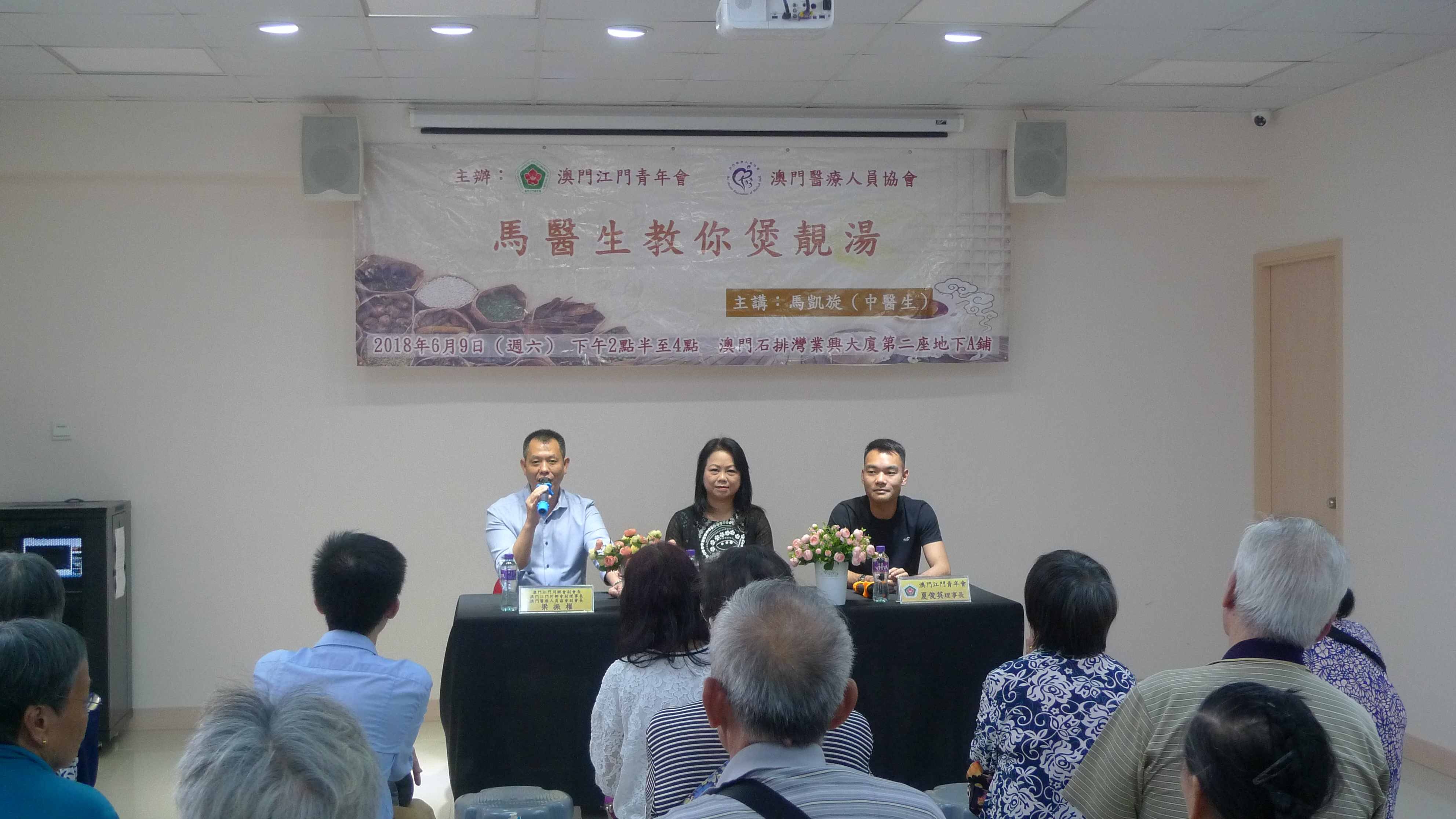日前,澳門江門青年會聯合澳門醫療人員協會於石排灣活動中心舉辦健康加油站活動。今期邀請到科大中醫藥學院諮詢委員會委員馬凱旋中醫生擔任主講嘉賓,向市民介紹中醫養生藥膳。