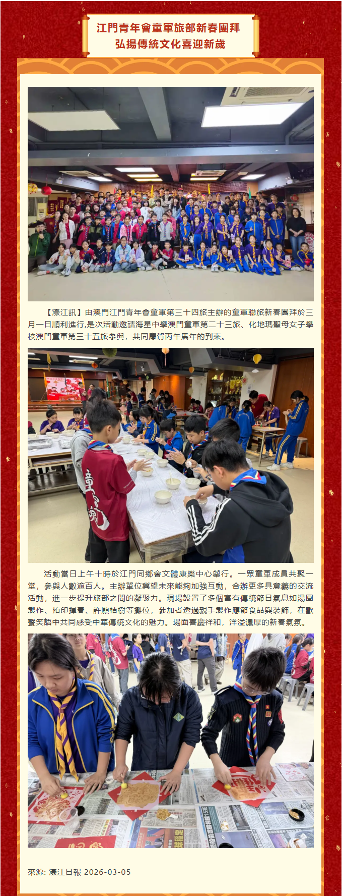 / 江門青年會童軍旅部新春團拜 弘揚傳統文化喜迎新歲